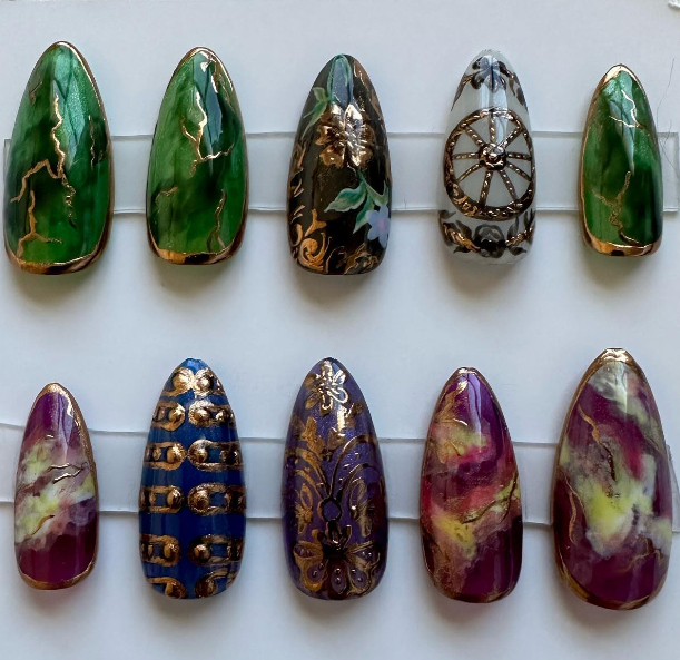 Now you’re probably wondering where these luxury press on nails come in. Well fast forward 3 months, my younger sister was getting married and she wanted gorgeous nails for her wedding of course, but she didn’t want to pay salon prices for them. My sister commissioned me to make her the perfect bougie yet elegant set of nails. Of course I delivered and the seed of a Luxury press on business was born. My passion for a good manicure has grown to a craving for creating one of a kind custom art pieces for you to wear on your fingernails!
