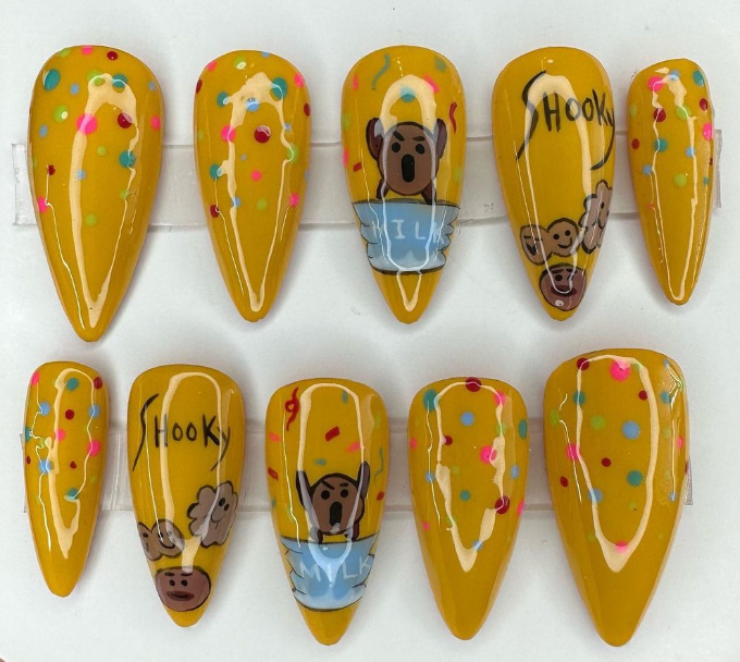 3 nails with simple art and 2 complex accent nails of your choice on each hand. Complex art consists of; ombre, very detailed designs requiring 3 or more layers of polish, characters, rhinestones, 3-D or raised designs, chrome, art work requiring blending and multiple different colors.