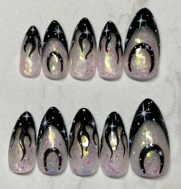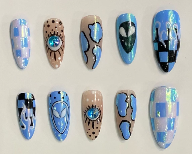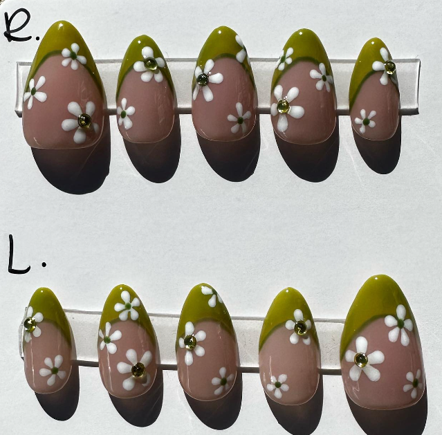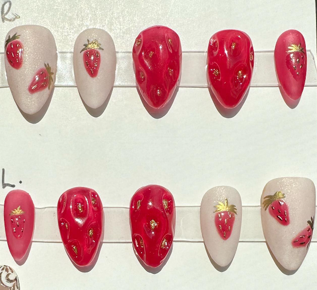 1-3 base colors with 5 intermediate nails of your choice on each hand. Intermediate art consists of; ombre, more detailed designs requiring 1-2 layers of polish, simple characters, rhinestones, simple 3-D or raised designs.
